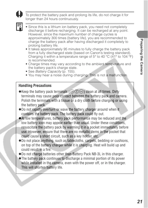 zDo not charge batteries other than Battery Pack NB-3L in this charger.