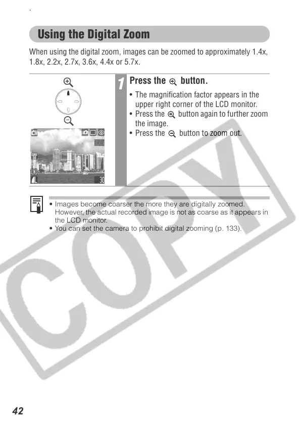 When using the digital zoom, images can be zoomed to approximately 1.4x,