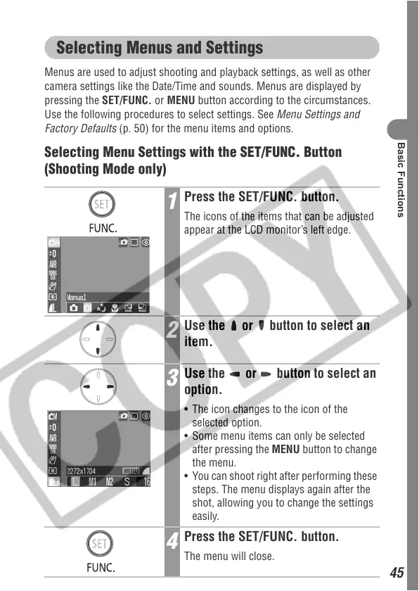 pressing the SET/FUNC. or MENU button according to the circumstances.