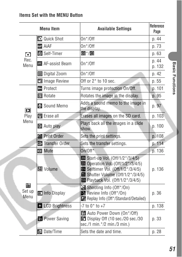 Selftimer Vol. (Off/1/2*/3/4/5)