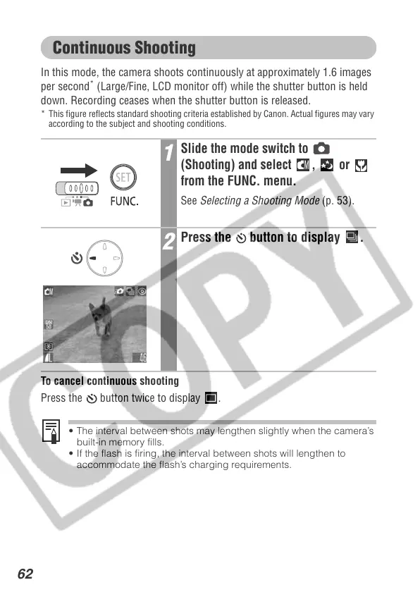 In this mode, the camera shoots continuously at approximately 1.6 images