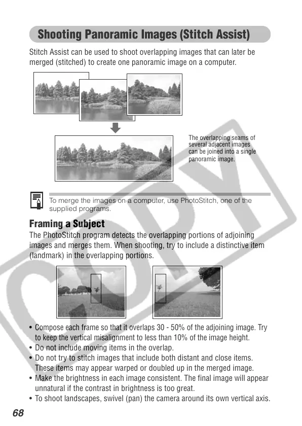 • Compose each frame so that it overlaps 30 - 50% of the adjoining image. Try