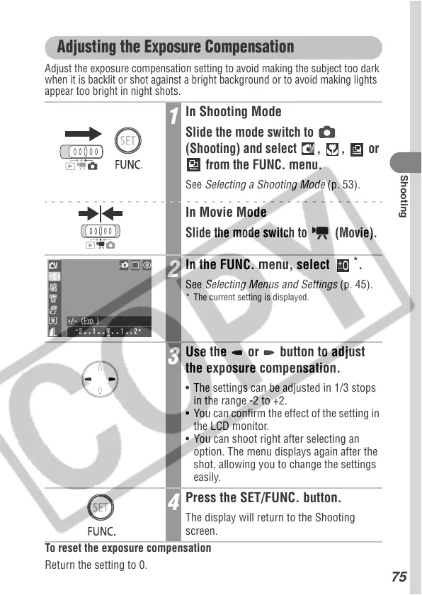 To reset the exposure compensation