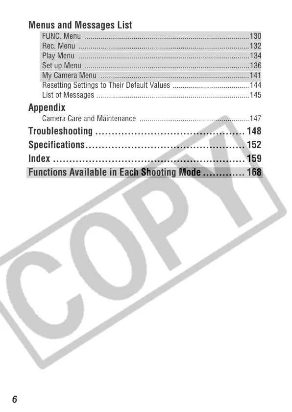 Functions Available in Each Shooting Mode ............. 168