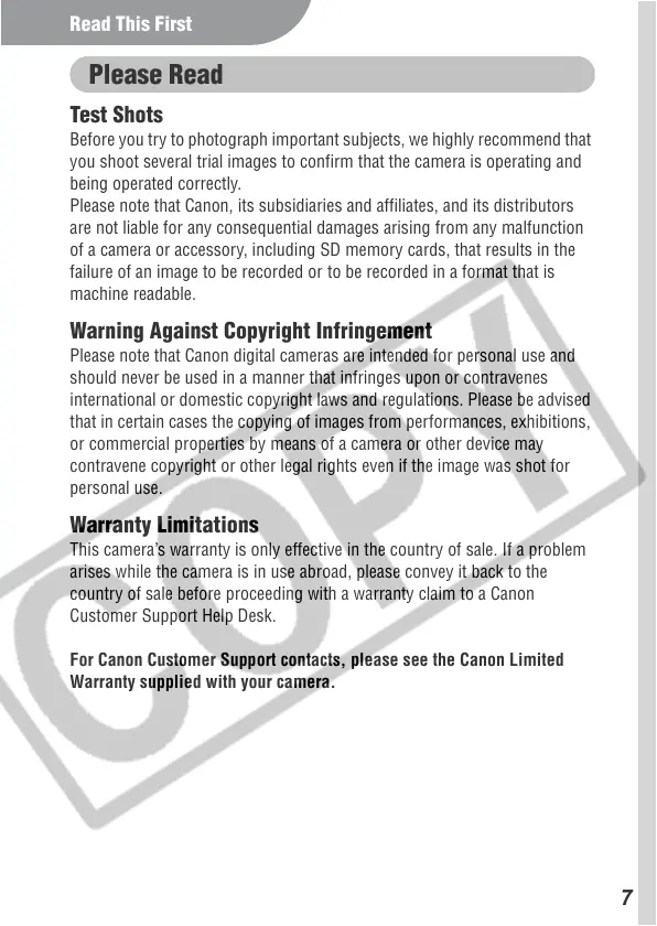 Please note that Canon digital cameras are intended for personal use and