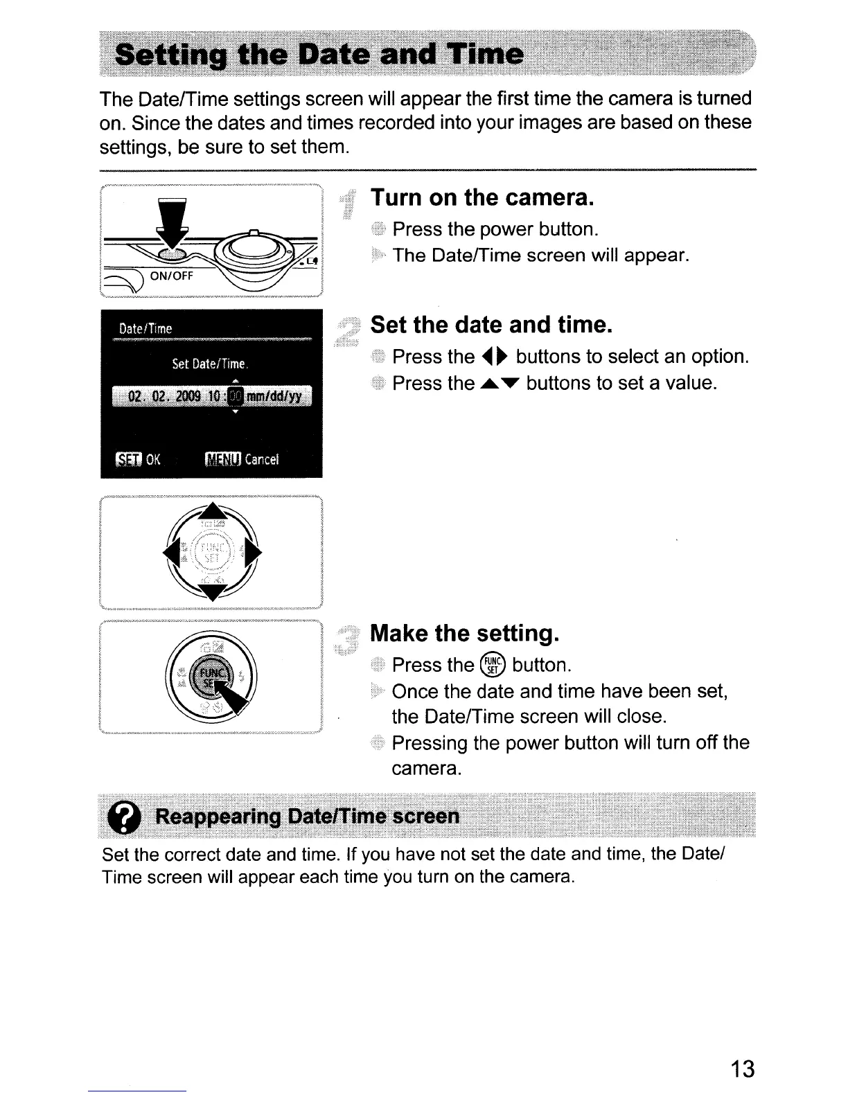 The DatelTime settings screen will appear the first time the camera is turned