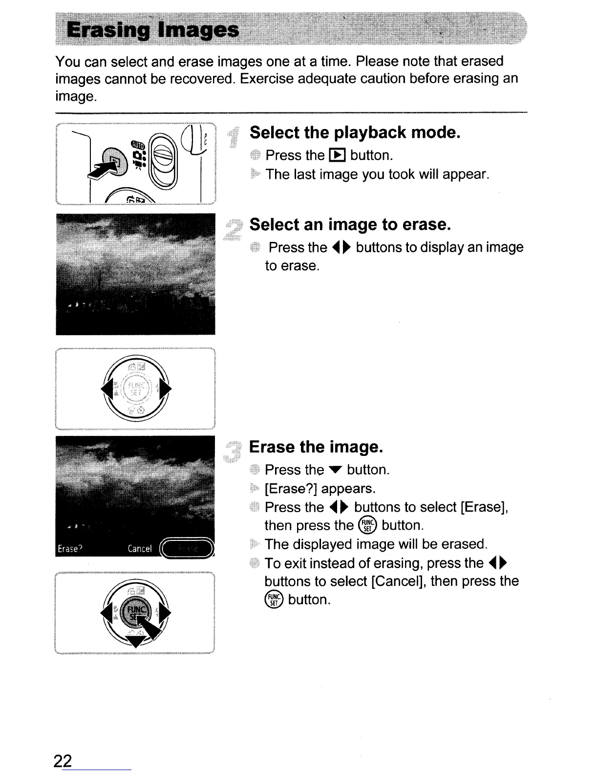 images cannot be recovered. Exercise adequate caution before erasing