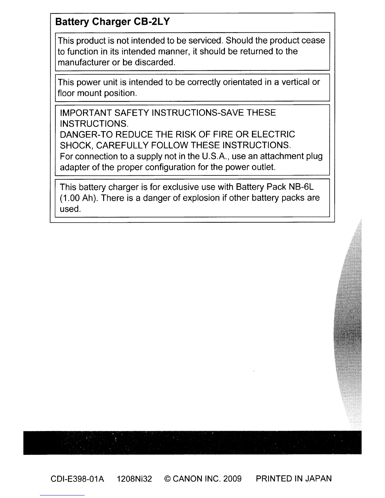 This battery charger is for exclusive use with Battery Pack NB-6L