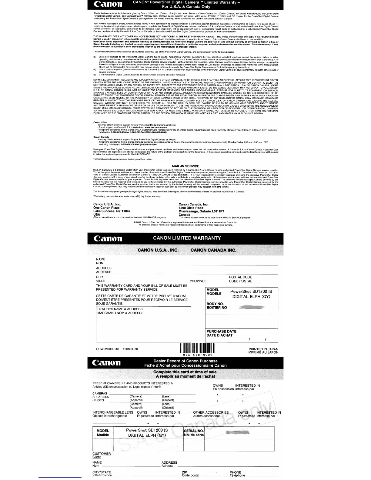 Canada, or the authorized PowerShot Digital