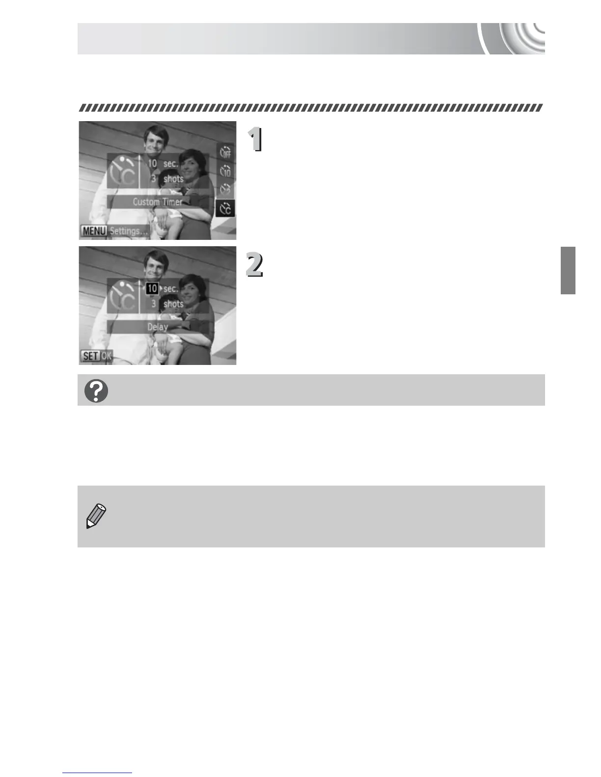 You can set the time delay (0 – 30 seconds) and the number of shots (1 – 10