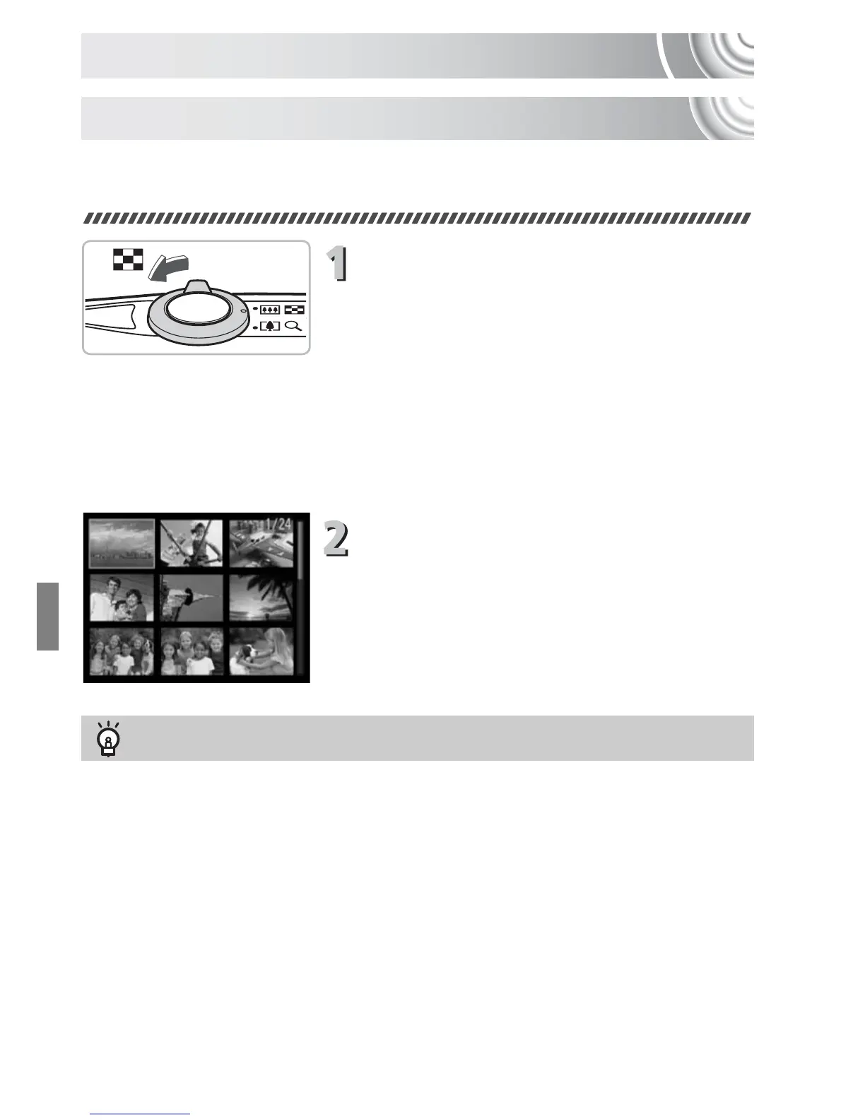 By repeatedly moving the zoom lever toward g, you can display an index of up