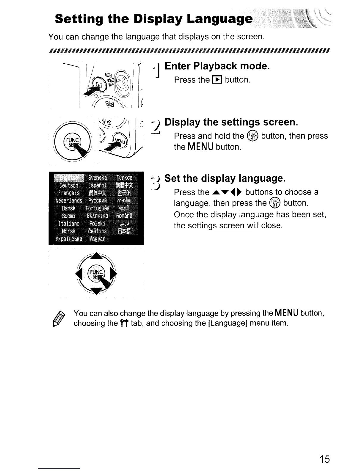 You can also change the display language by pressing the