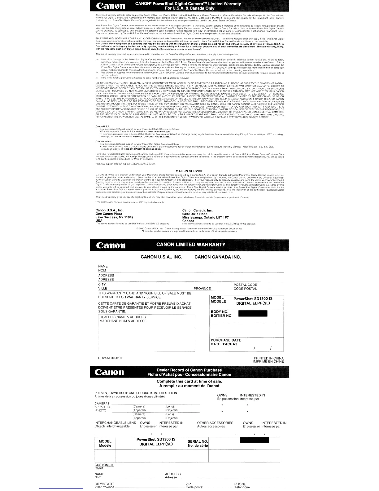 CANON LIMITED WARRANTY