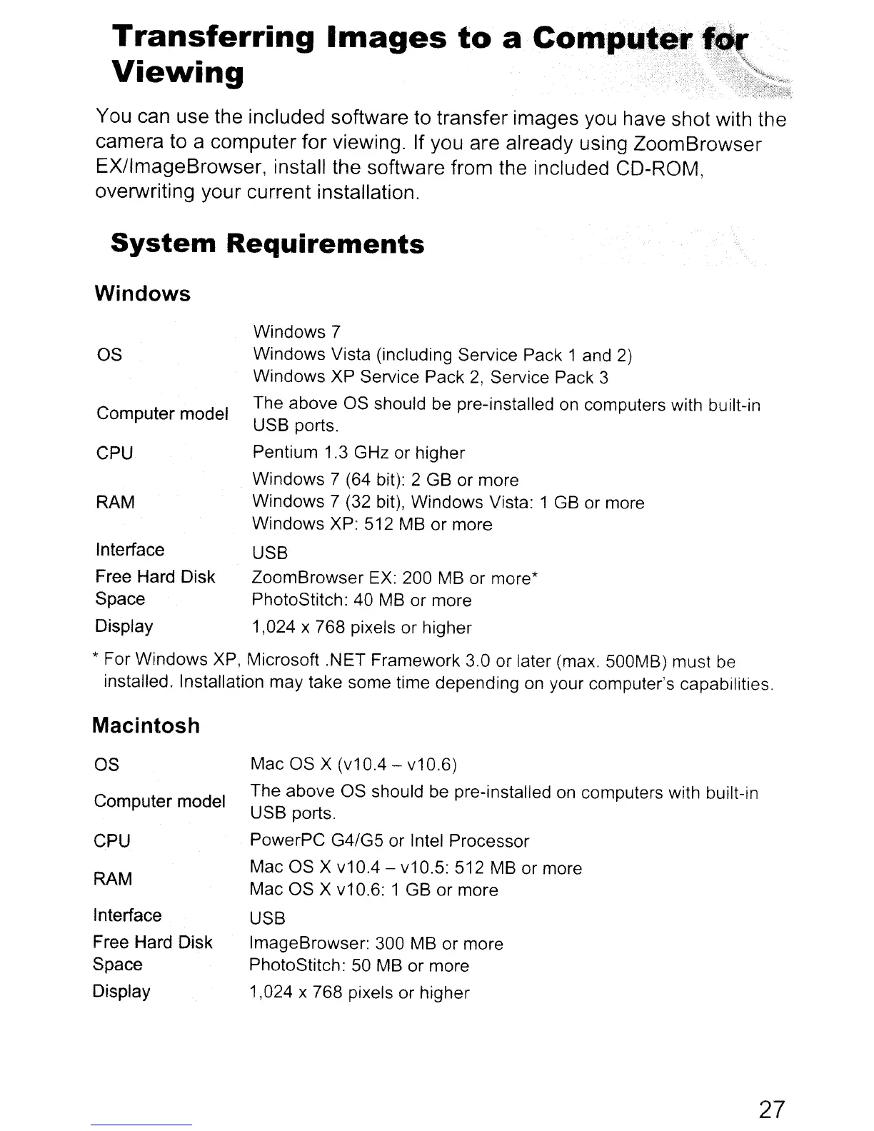 ZoomBrowser EX: 200 MB or more*