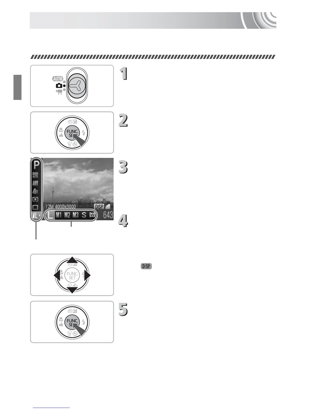 Commonly used shooting functions can be set with the FUNC. menu. The