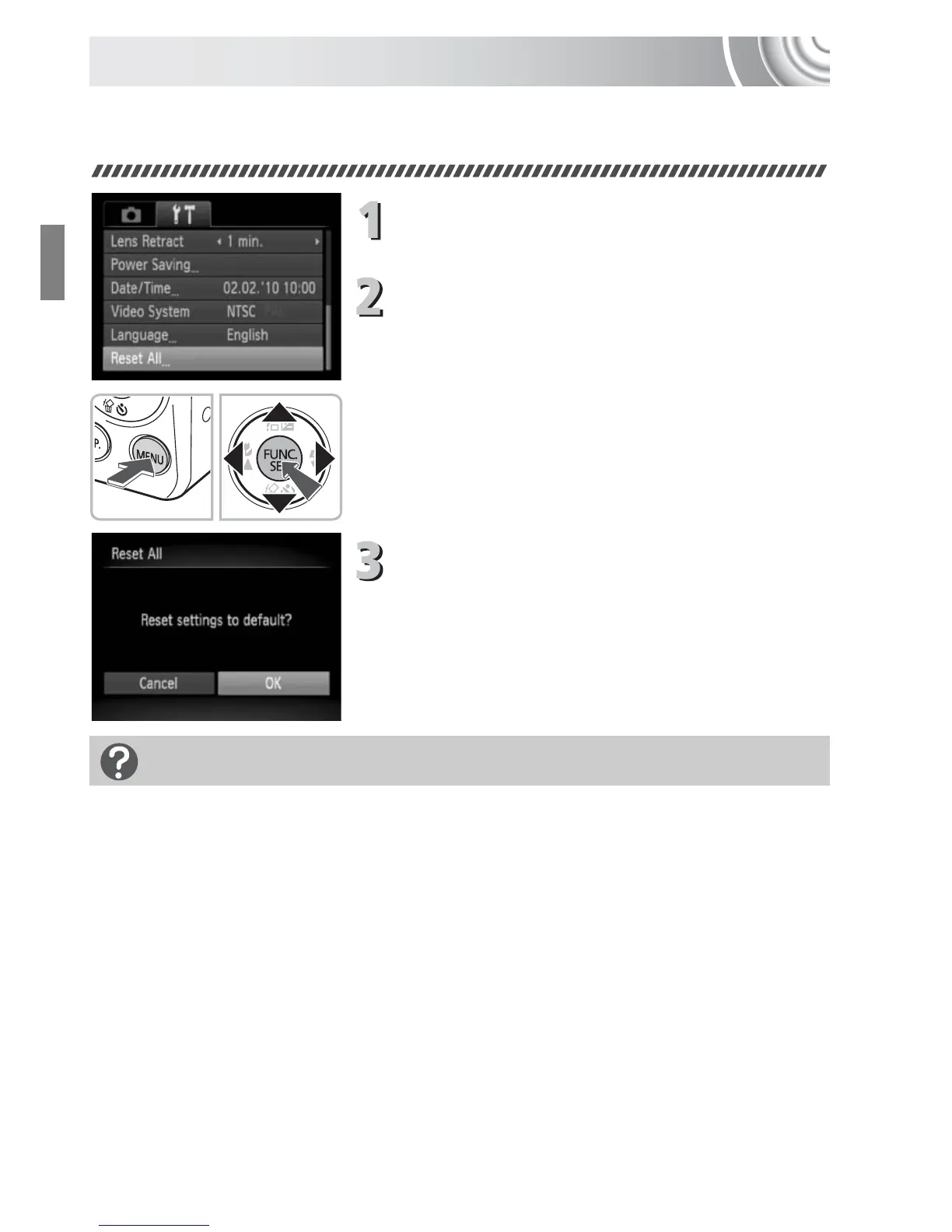 ● Press the op buttons to choose [Reset