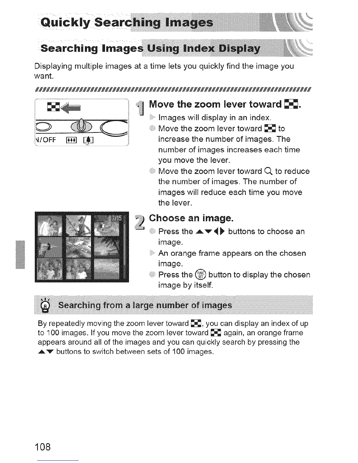 to 100 images. If you move the zoom lever toward _ again, an orange frame