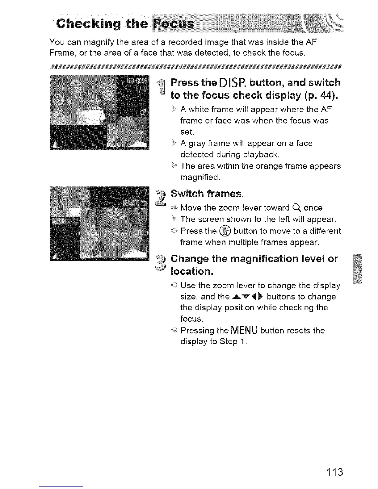 to the focus check display (p. 44).