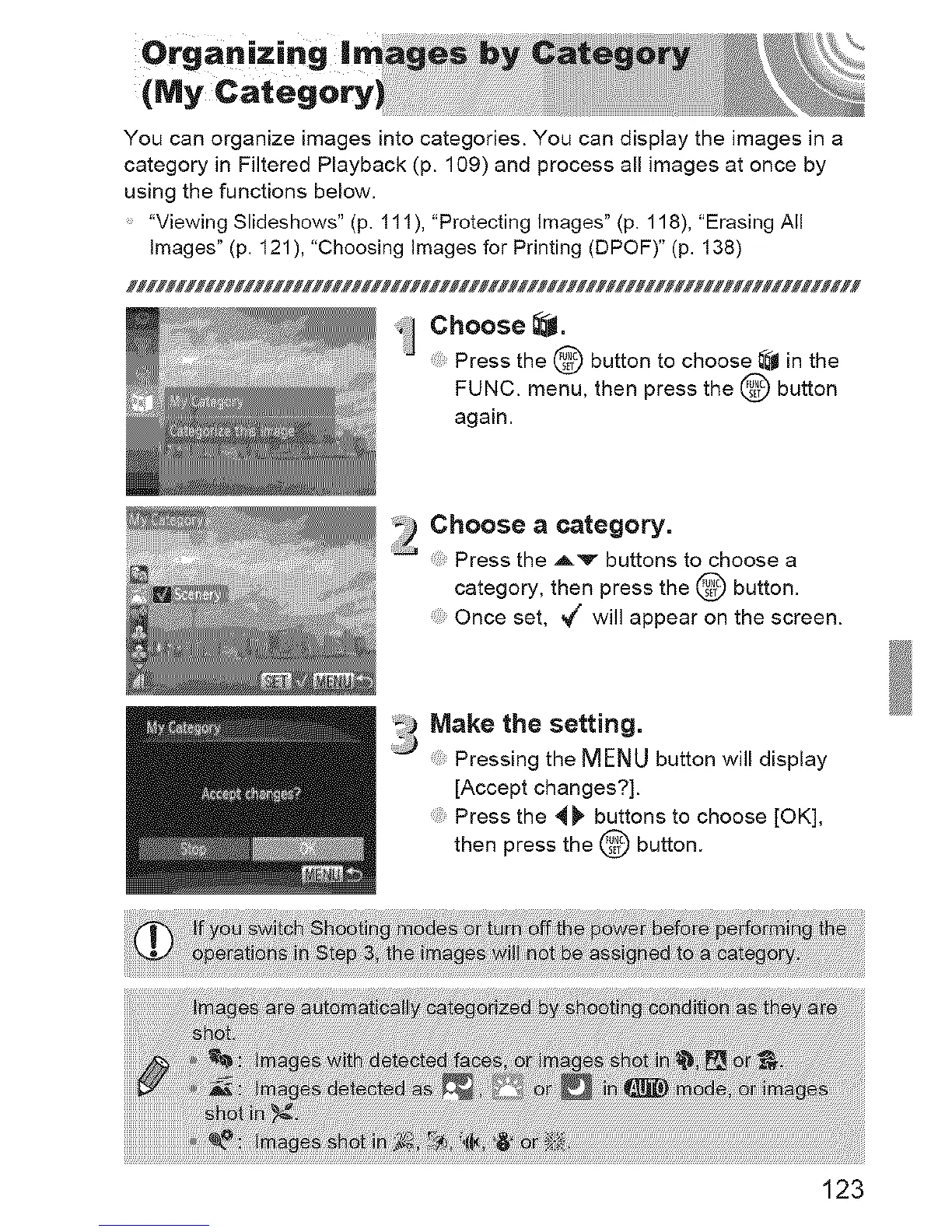 Images" (p. 121 ), "Choosing Images for Printing (DPOF)" (p. 138)