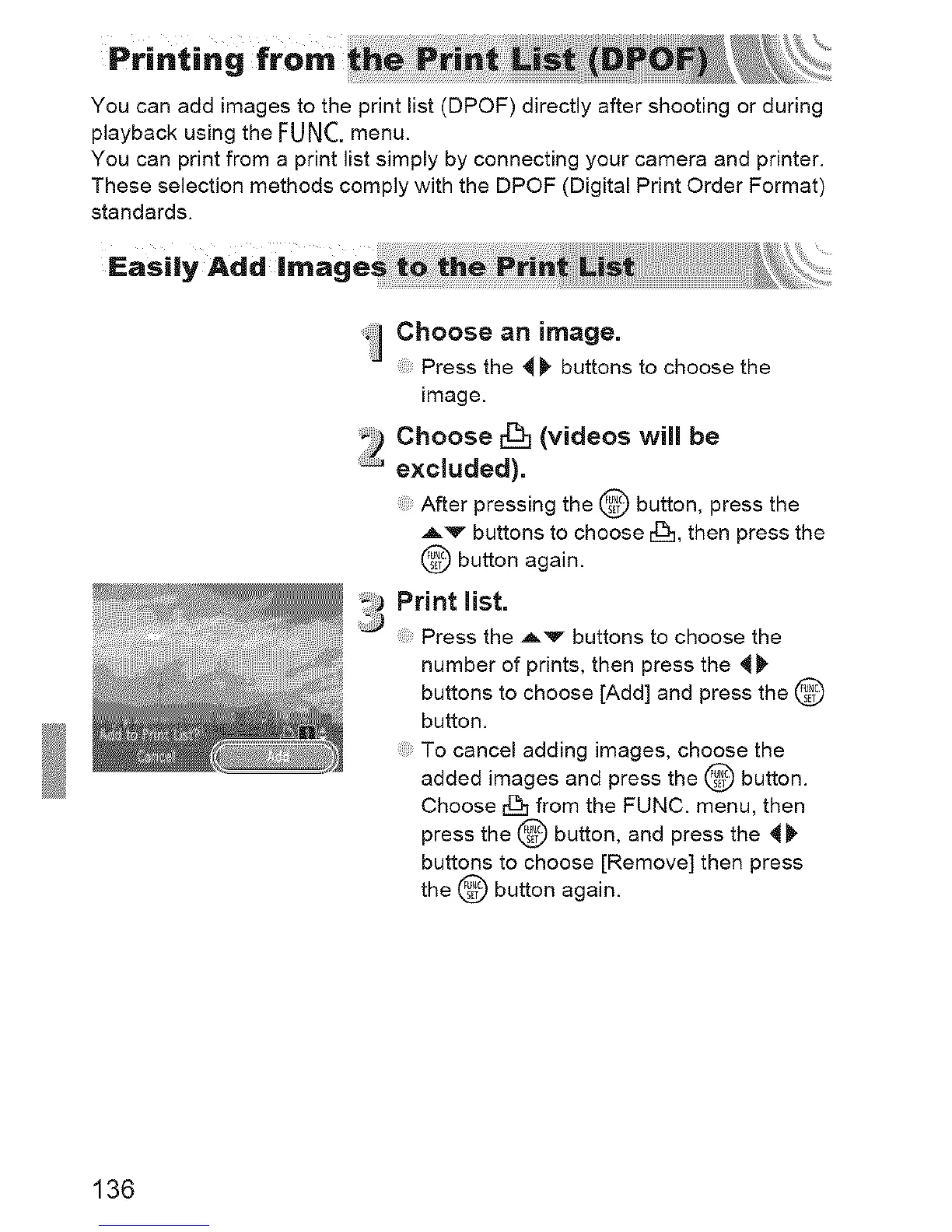 These selection methods comply with the DPOF (Digital Print Order Format)