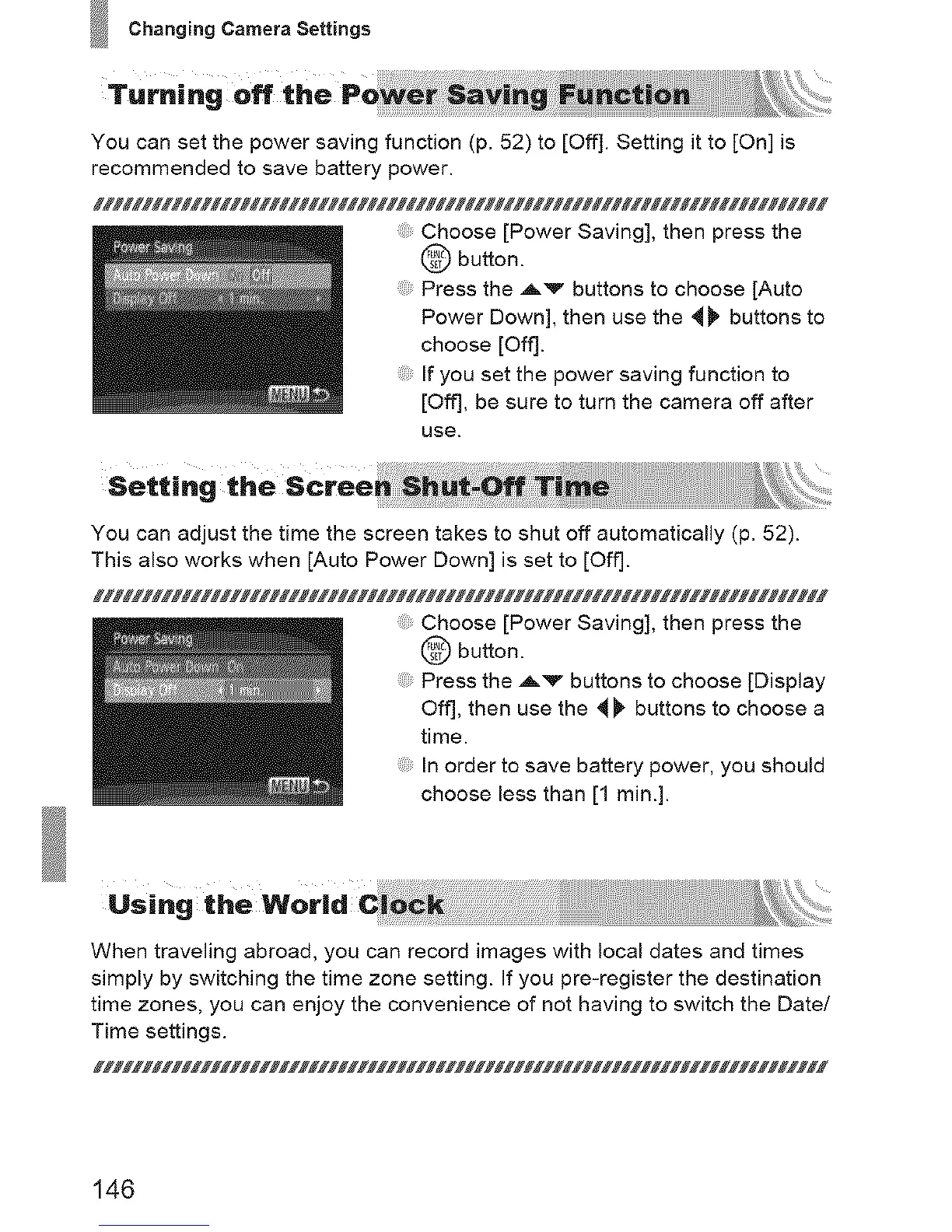 You can set the power saving function (p. 52) to [Off]. Setting it to [On] is