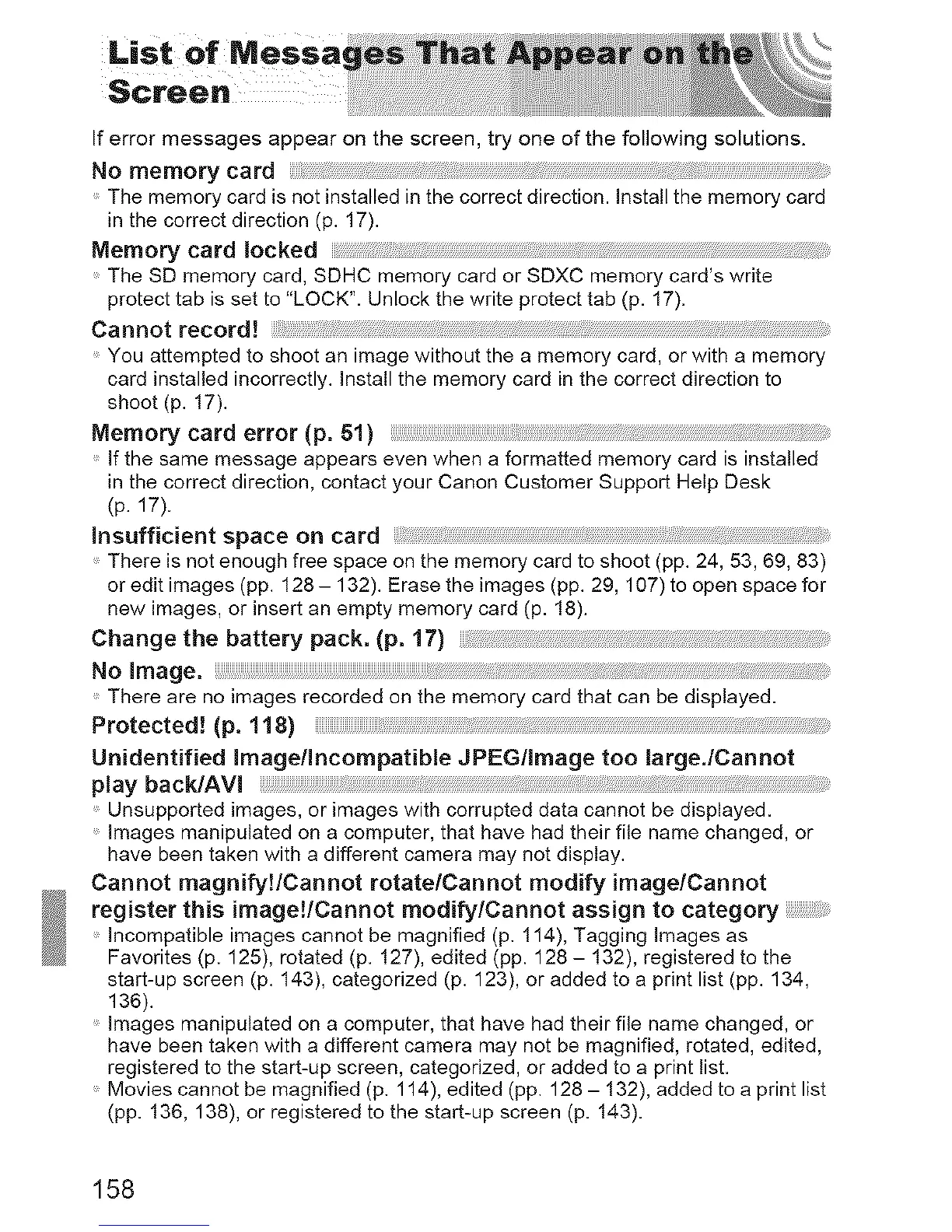 There is not enough free space on the memory card to shoot (pp. 24, 53, 69, 83)