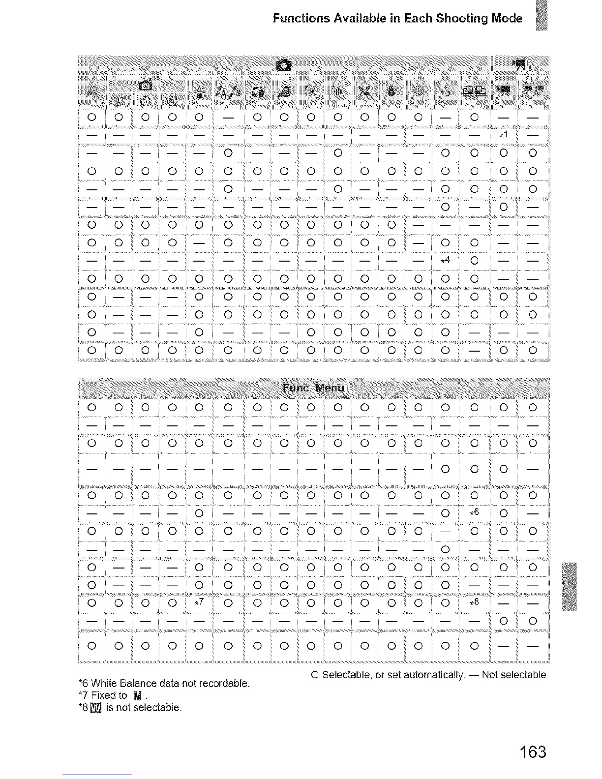 Functions Available in Each Shooting Mode