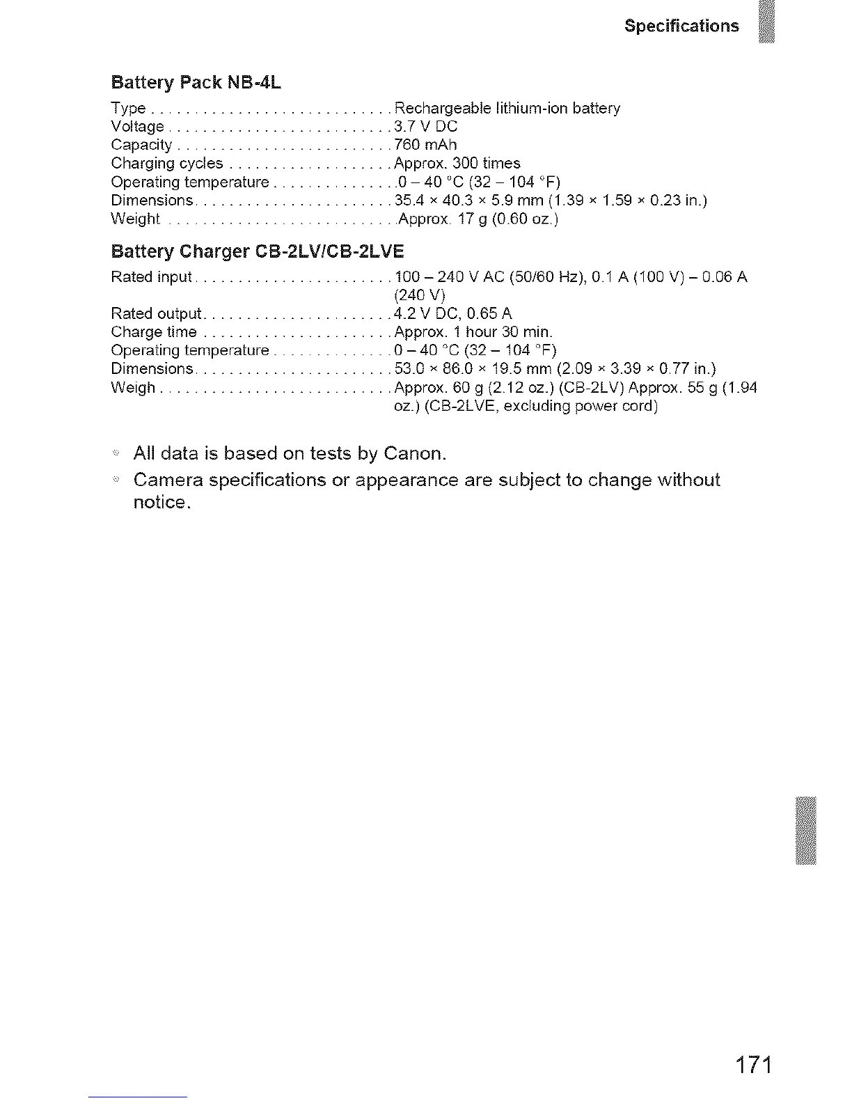 Weigh ........................... Approx. 60 g (2.12 oz.) (CB-2LV) Approx. 55 g (1.94