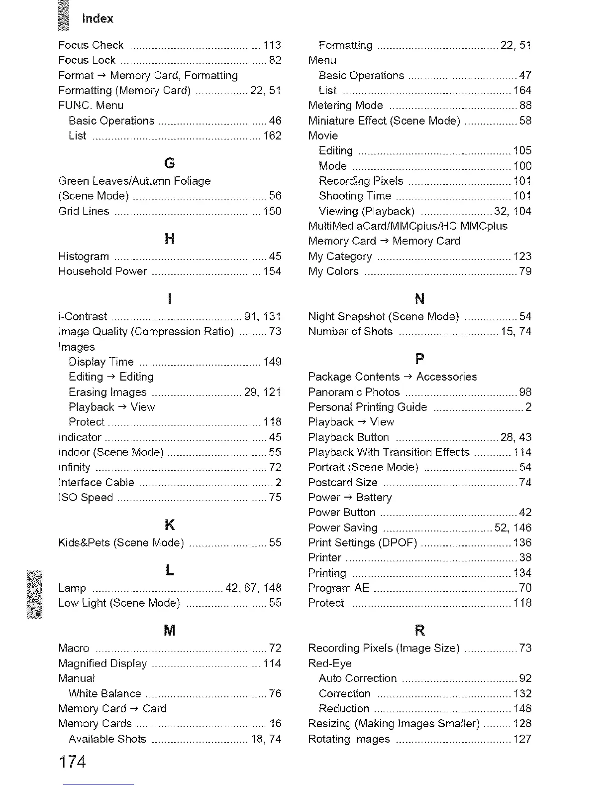 Formatting (Memory Card) ................. 22, 51