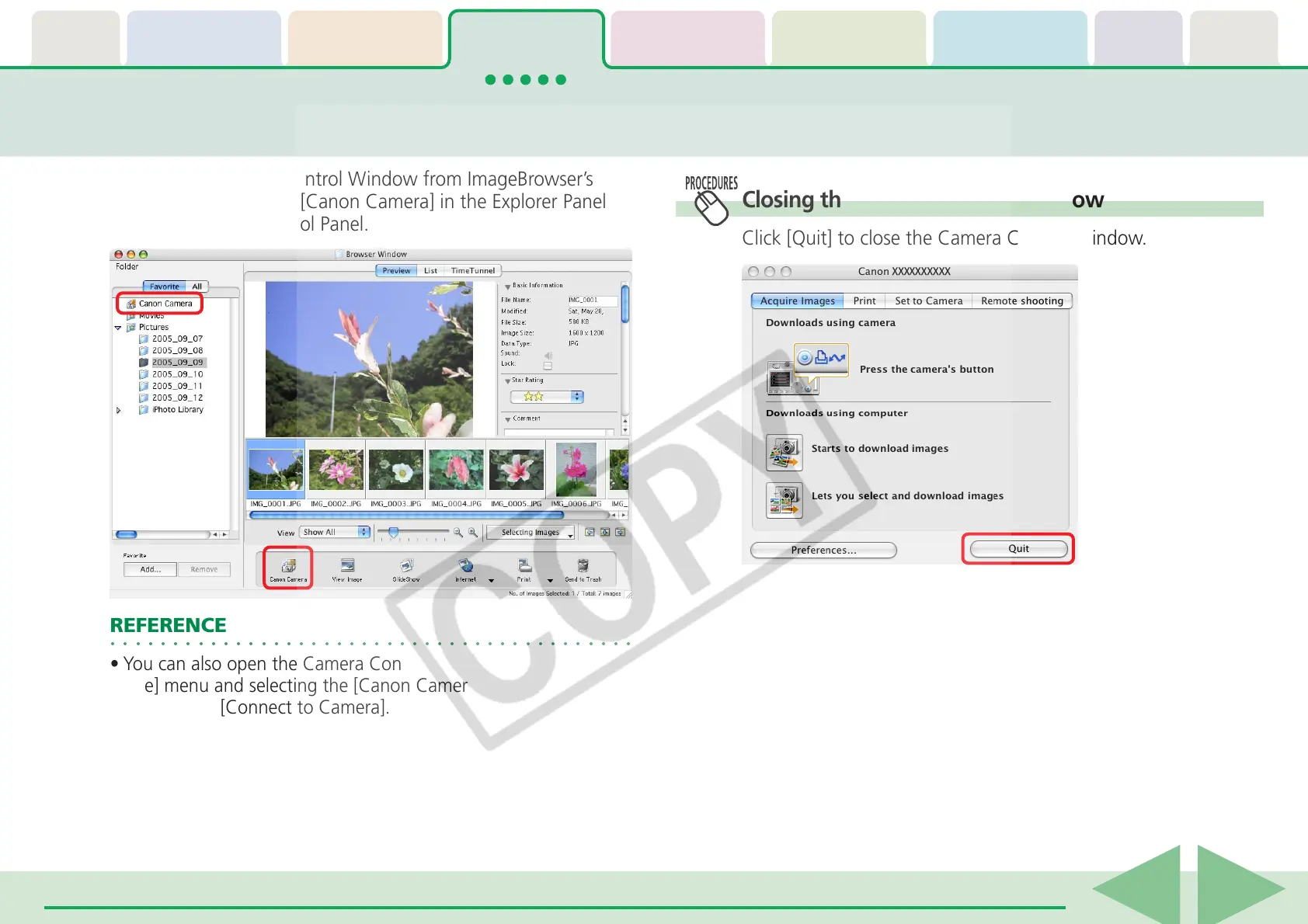Browser Window, click [Canon Camera] in the Explorer Panel