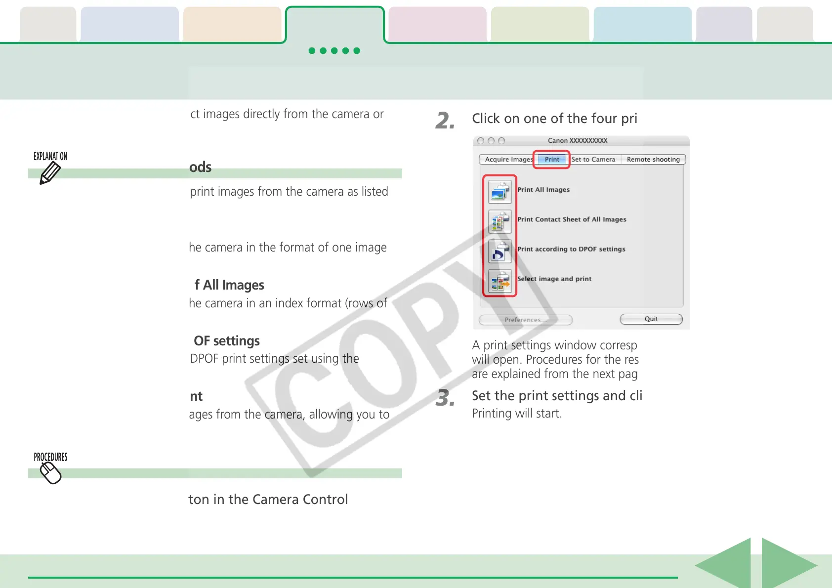Click the [Print] button in the Camera Control