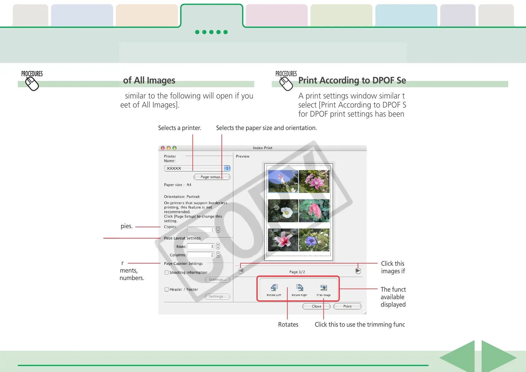 Print According to DPOF Settings—Index