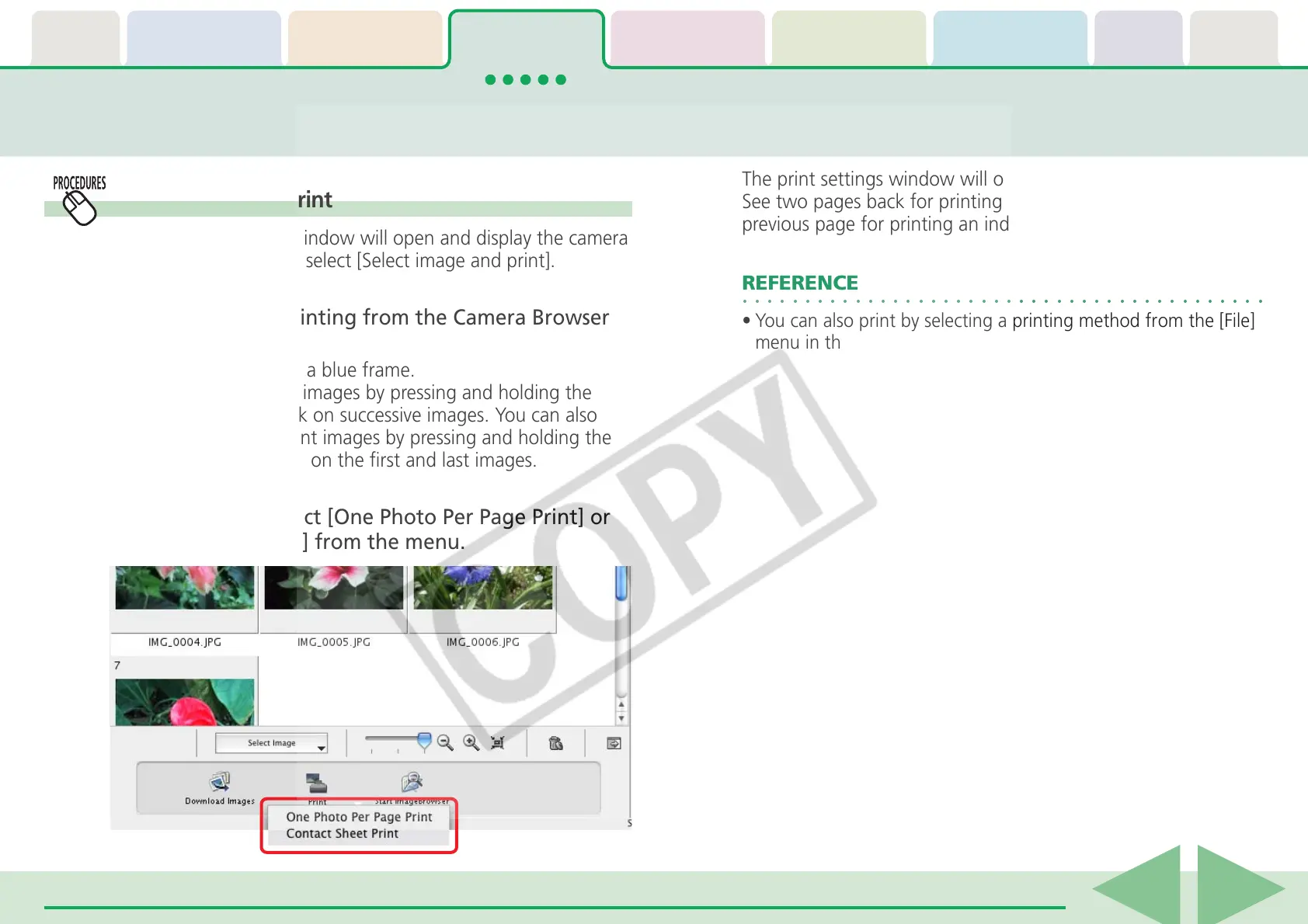Select images for printing from the Camera Browser