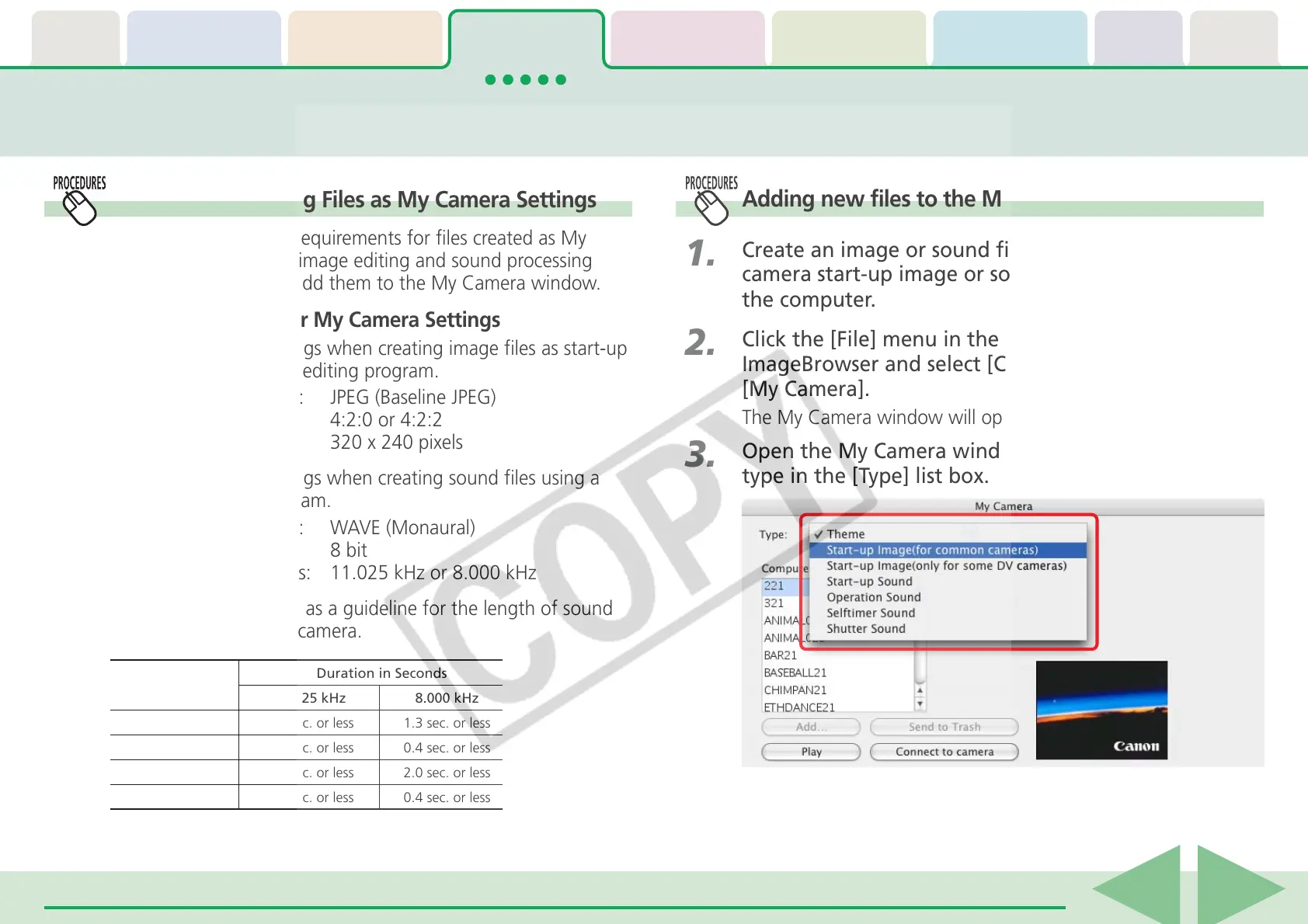 Adding new files to the My Camera Settings