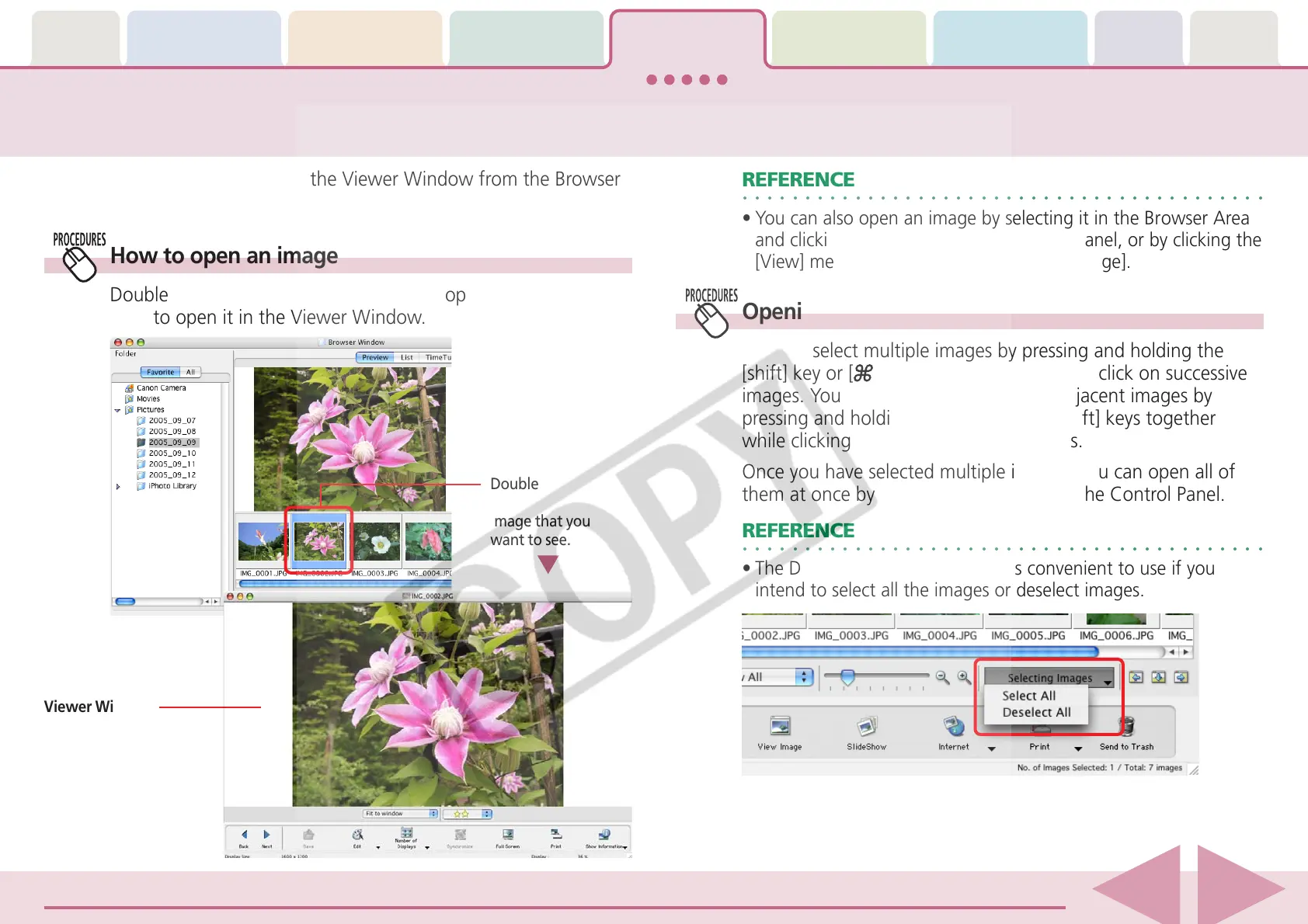 images. You can also select a series of adjacent images by