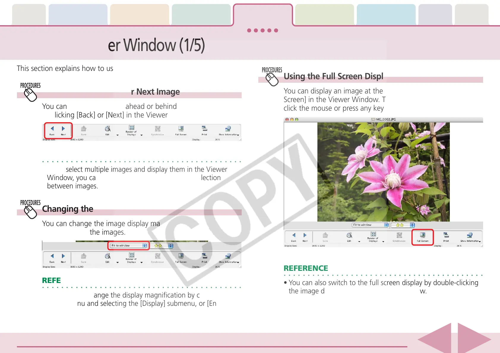 by clicking [Back] or [Next] in the Viewer Window.