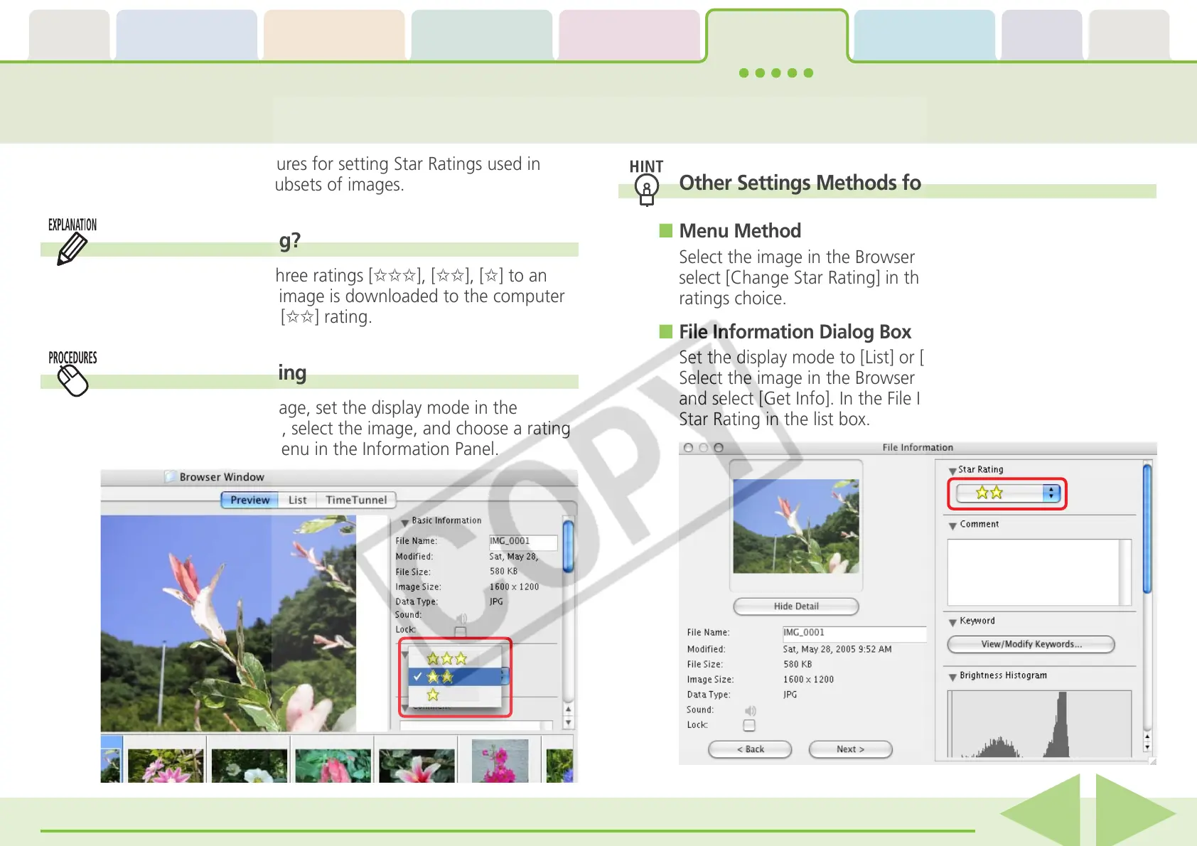 You can assign one of three ratings [✩✩✩], [✩✩], [✩] to an