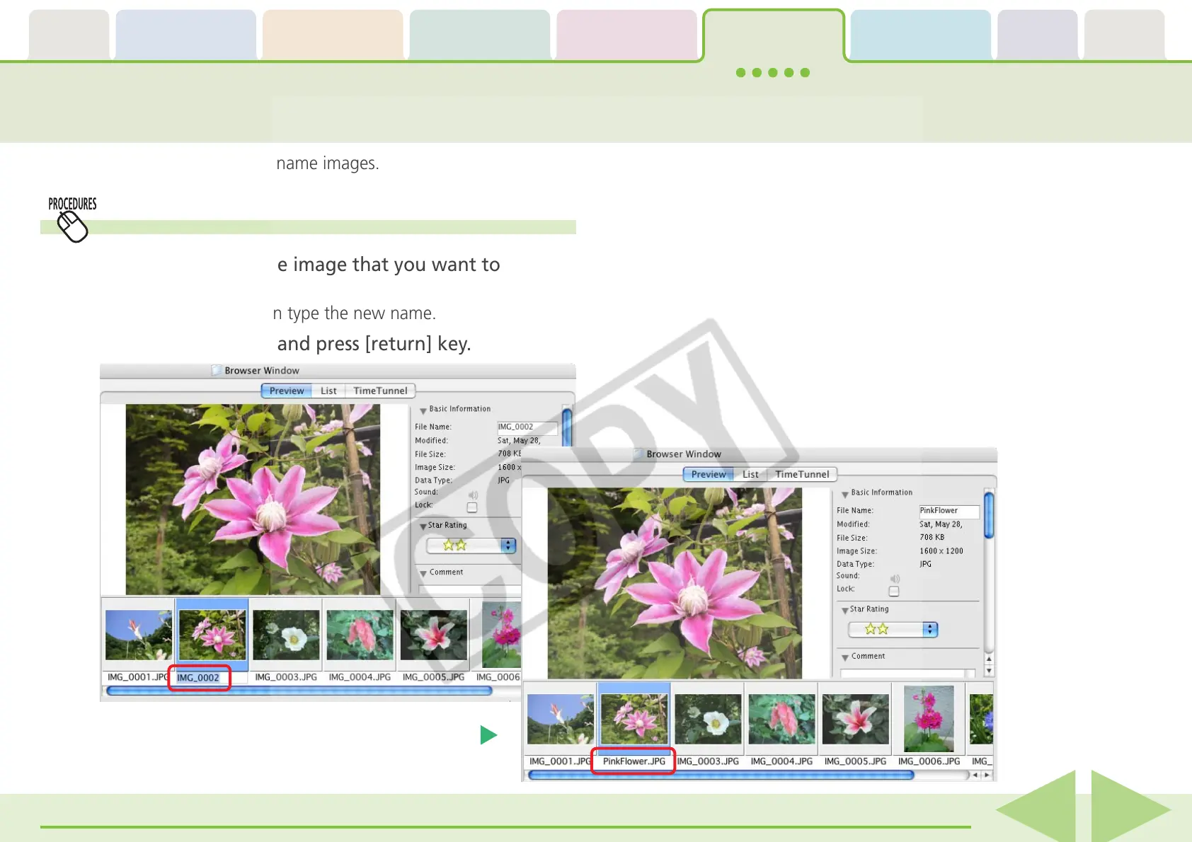 This section describes how to rename images.