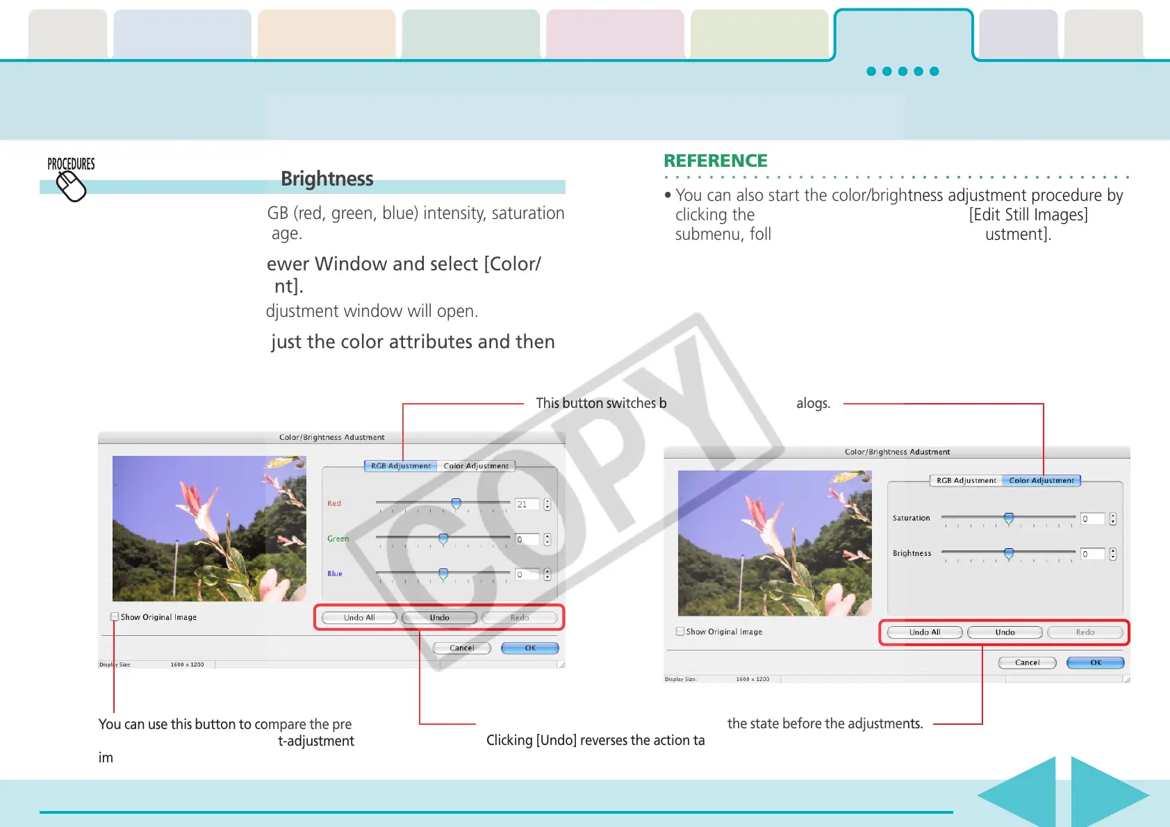 Clicking [Undo All] restores the image to the state before the adjustments.