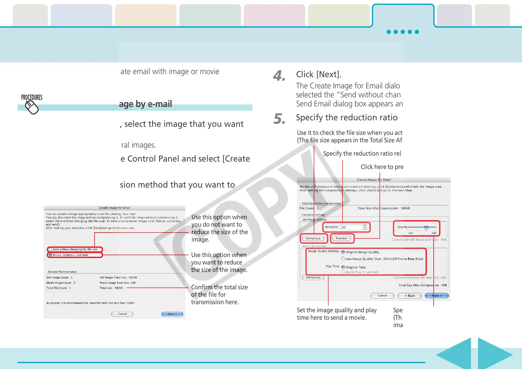 Specify the reduction ratio and the image quality.