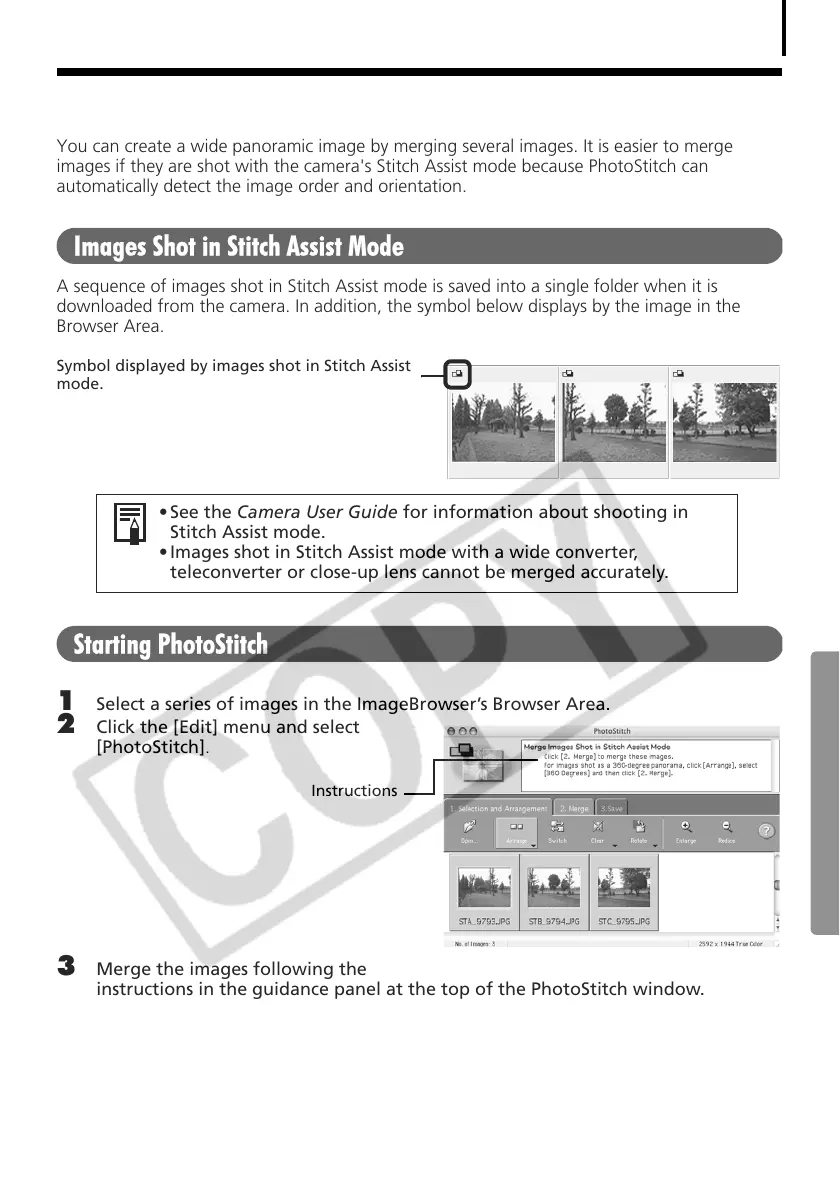 images if they are shot with the camera's Stitch Assist mode because PhotoStitch can