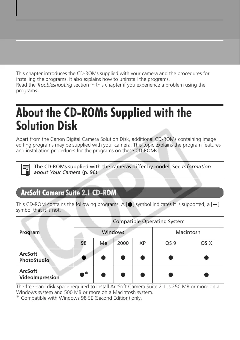 The CD-ROMs supplied with the cameras differ by model. See Information
