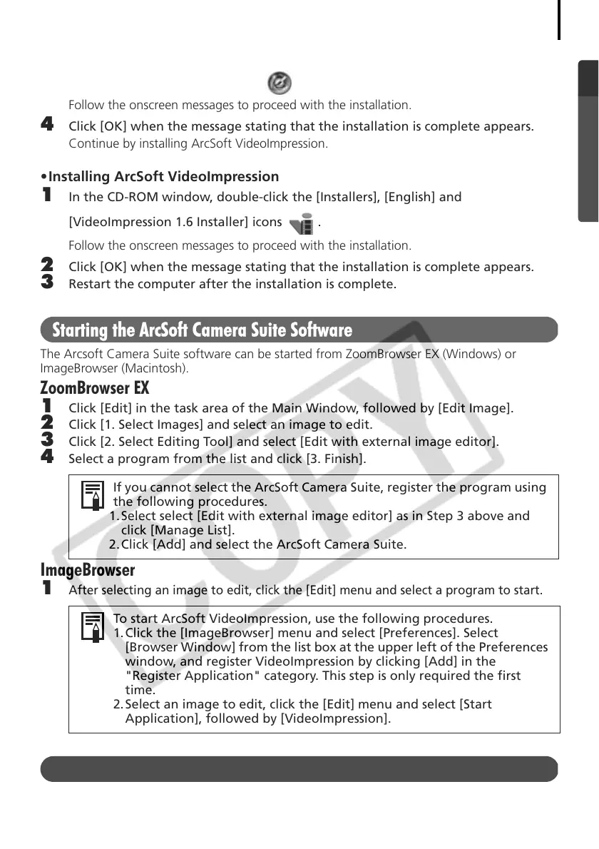 The Arcsoft Camera Suite software can be started from ZoomBrowser EX (Windows) or