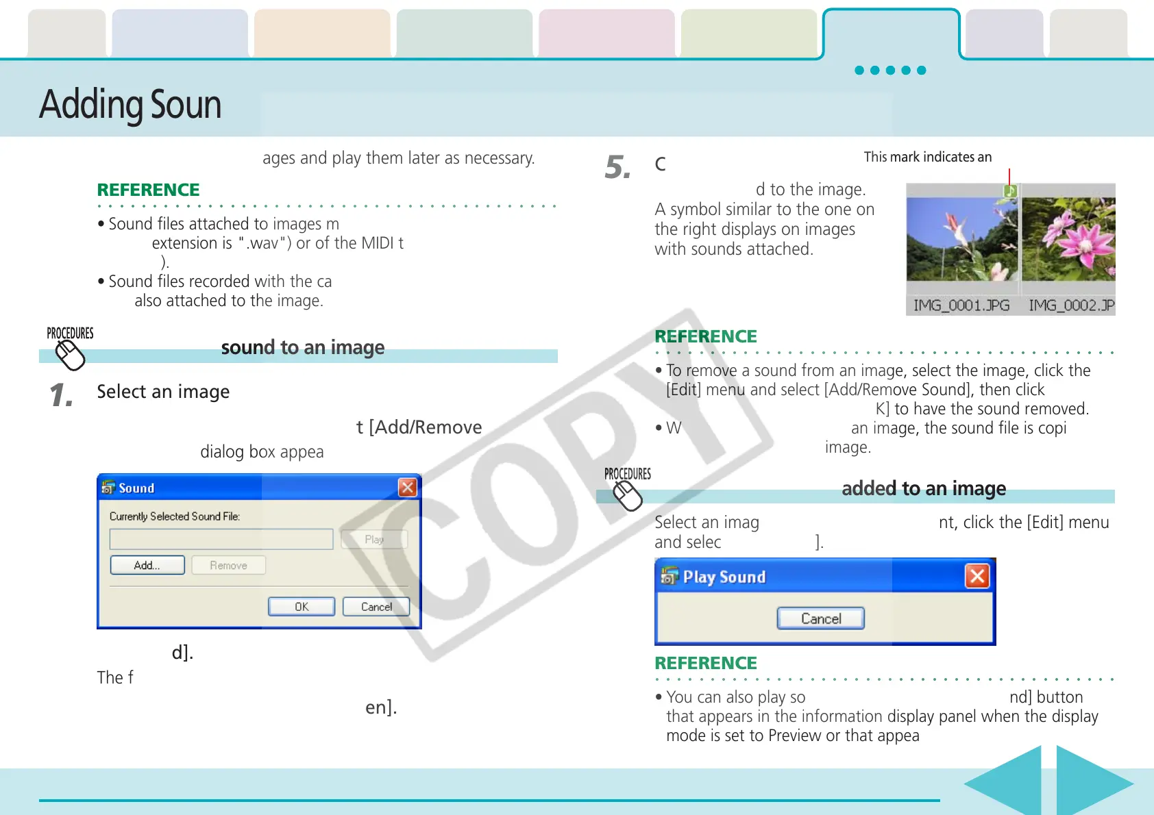 • Sound files attached to images must be of the WAVE type (file