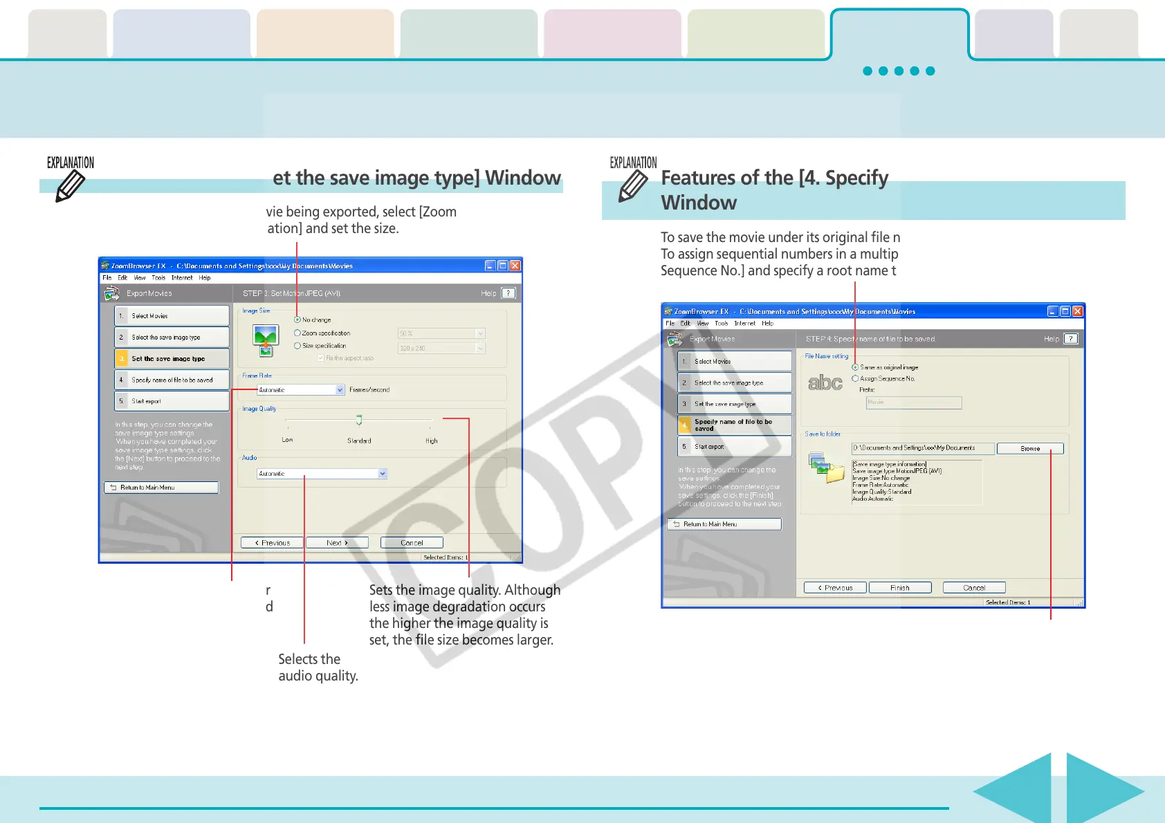 Features of the [3. Set the save image type] Window Features of the [4. Specify name of file to be saved]
