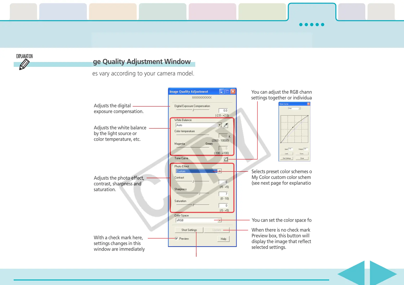 Features of the Image Quality Adjustment Window