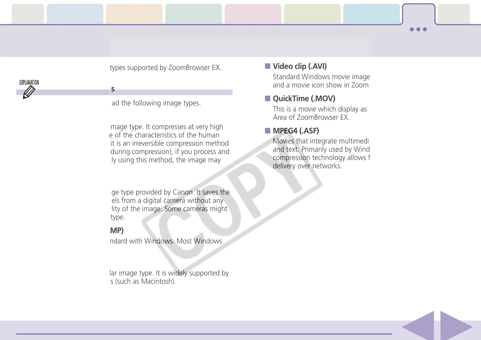 The following is a list of image types supported by ZoomBrowser EX.