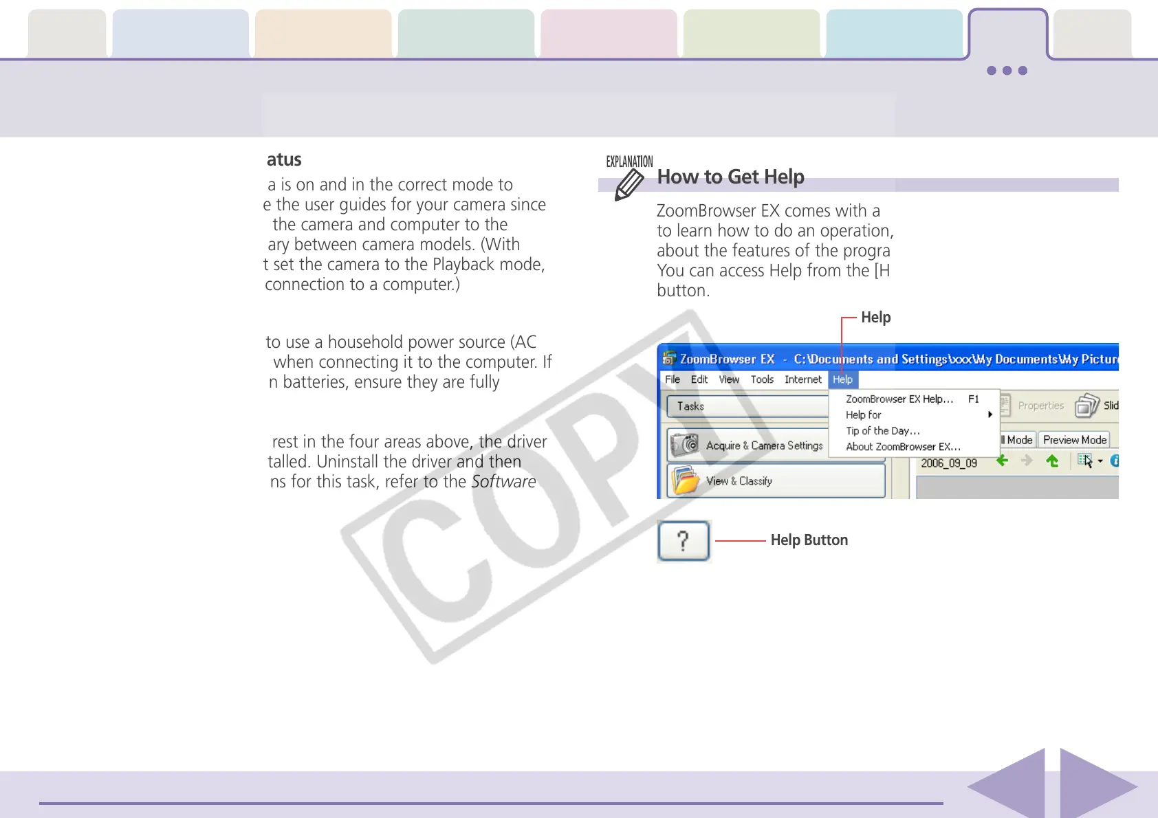 ZoomBrowser EX comes with a Help file. Use it when you want