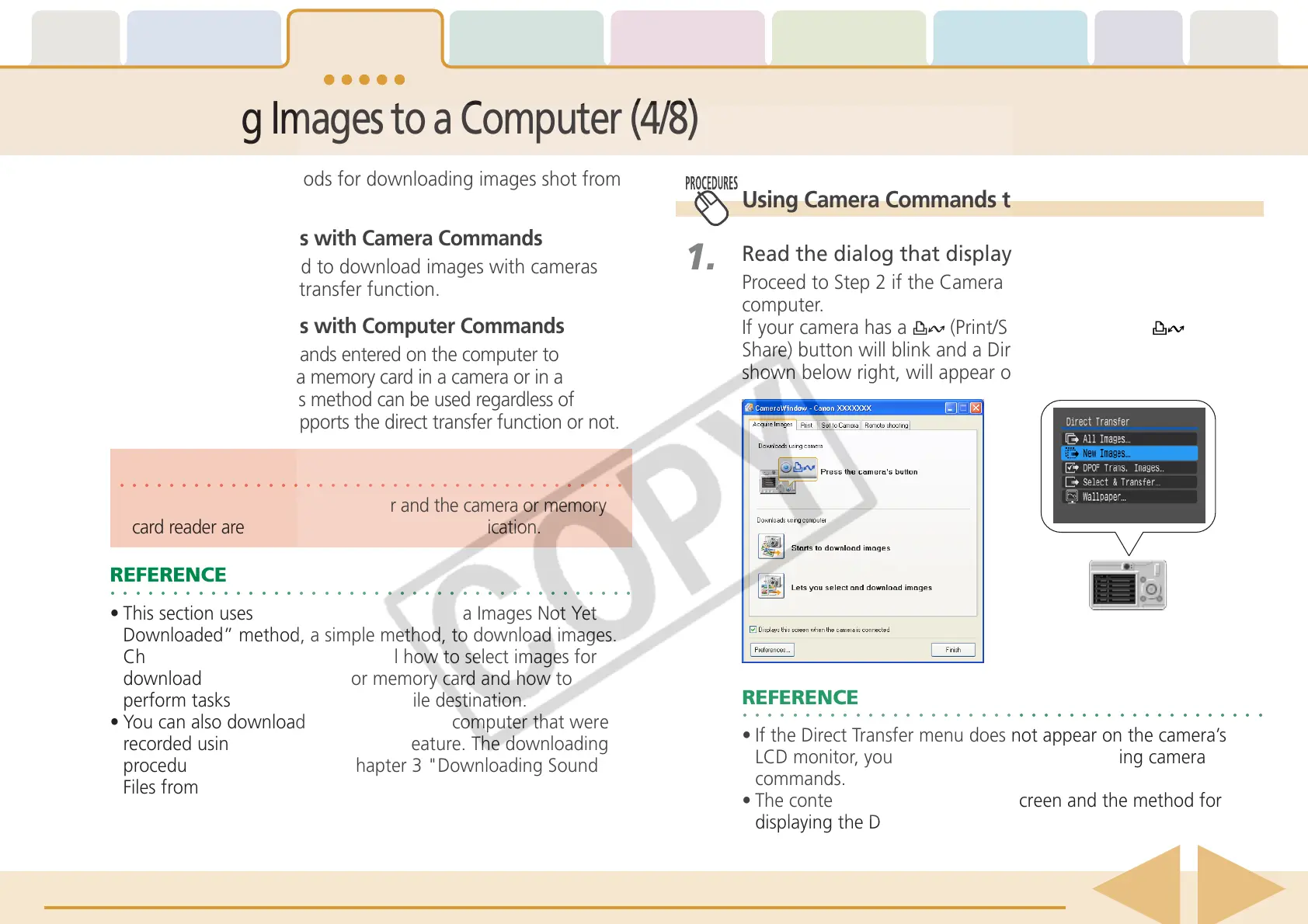 whether your camera supports the direct transfer function or not.