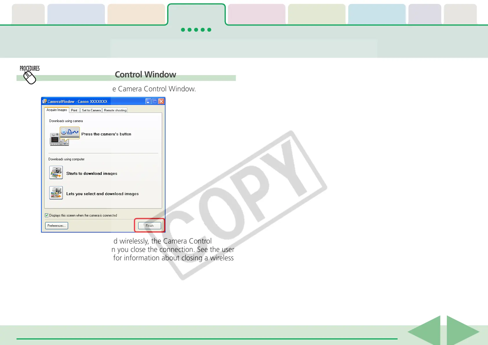 Click [Finish] to close the Camera Control Window.